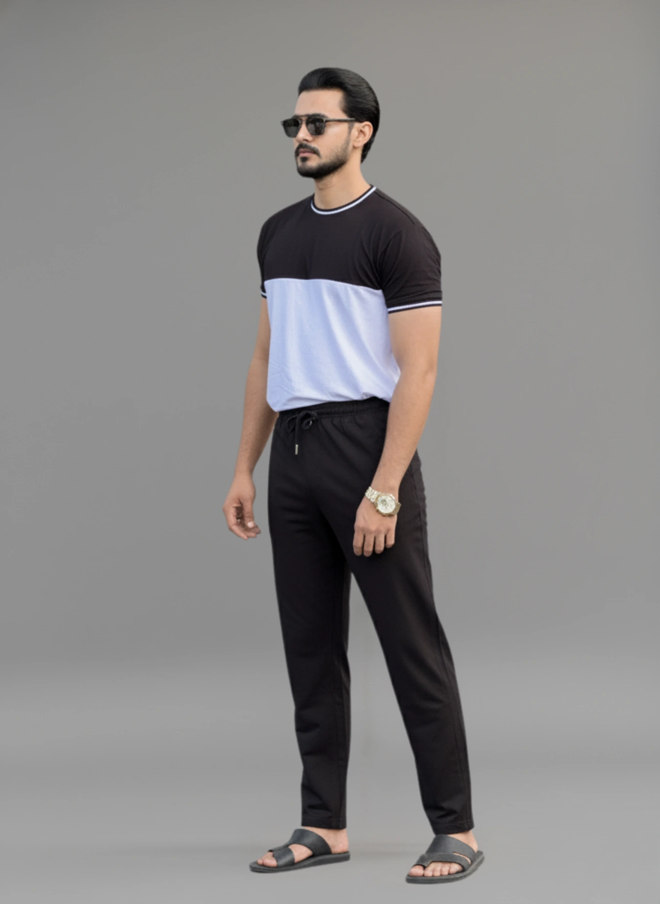 ছাড়Medium Fit Pajama for Men – Black & White Combo